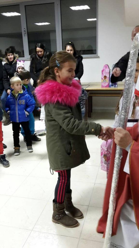 Kao i prošle godine, tako smo i ove godine organizirali susret djece sa sv. Nikolom u našoj vjeronaučnoj dvorani, koja se nalazi ispod župne crkve. Učinili smo to uoči blagdana sv. Nikole, 5. 12. 2017., nakon sv.mise prvog dana trodnevnice za naš patron; BEZGREŠNO ZAčEĆE BALAŽENE DJEVICE MARIJE. Susret je organiziran za svu djecu do četvrtog razreda, dakle za prvopričesnike i sve ostale mlađe koje su roditelji prijavili. Nakon sv. mise uputili smo se u dvoranu, a onda je došao sv. Nikola sa svoja dva anđela i krampusom. Bilo je oko 60 djece. Sv. Nikola je pitao djecu da li slušaju roditelje,jesu li dobri, znaju li se Bogu molit itd.Svi su odgovorili potvrdno. Malo je prekorio djecu što su sjeli na stolice a njihovi roditelji I stariji moraju stajati ?! Zatim je pitao djecu zna li netko neku pjesmicu za njega, pa je troje djece odrecitiralo svako po jednu pjesmicu.Sv. Nikola se zahvalio, a onda je počeo dijeliti paketiće koje su mu njegovi anđeli donosili i gotovo sa svakim djetetom se pozdravio, ponešto priupitao i svakom dao paketić s darovima.Bilo je i one dječice koja su se malo plašila prići sv.Nikoli, možda zbog krampusa,  pa je on prišao njima. A jedna mala djevojčica Ana donijela je svoj dar sv. Nikoli ..svašta mu je nešto našarala i nacrtala, između ostalog i njega je nacrtala, što ga je posebno obradovalo, i on joj je zahvalio dajući joj paketić s darovima.Na žalost neka djeca sa spiska nisu došla, ali eto onda su se pojavila ona koje nitko nije prijavio, pa je sv. Nikola i njima udijelio paketić. Razišli smo se uz pozdrav s Bogom i hvala!
